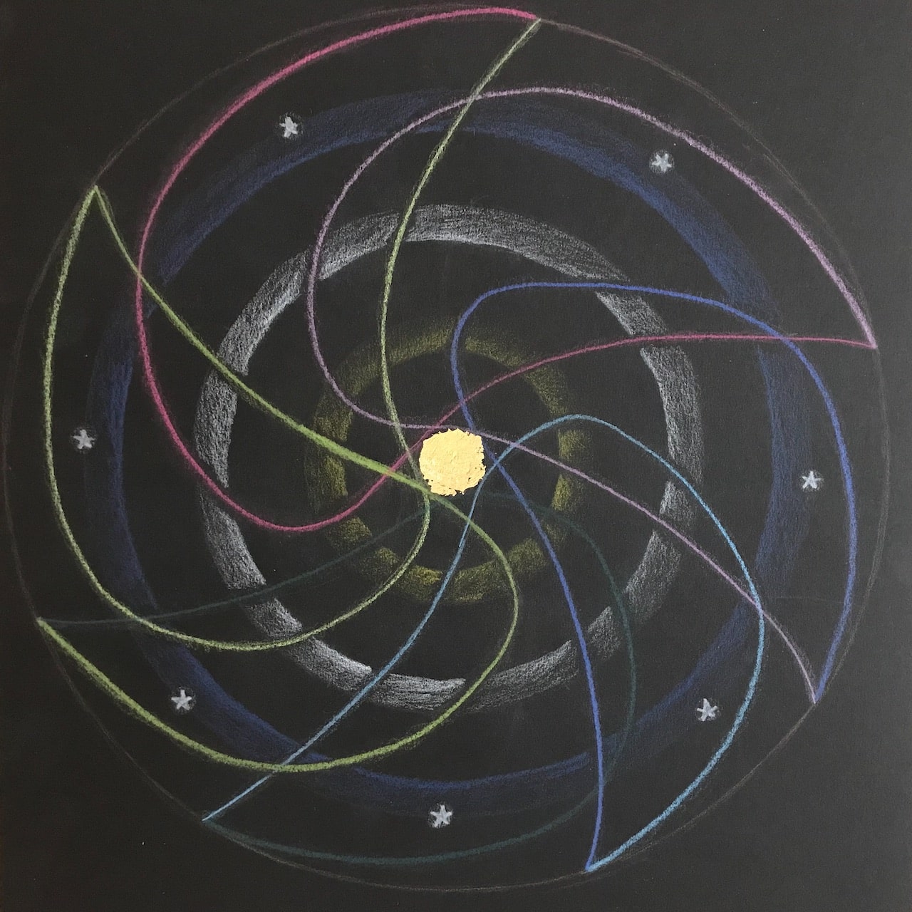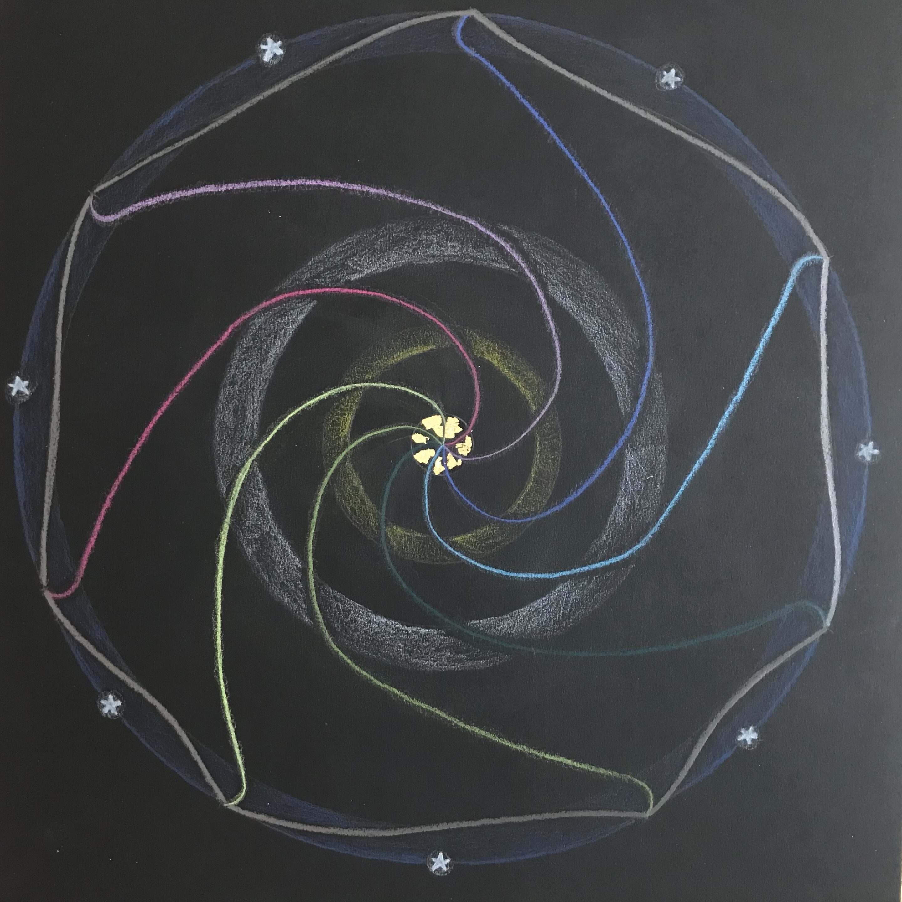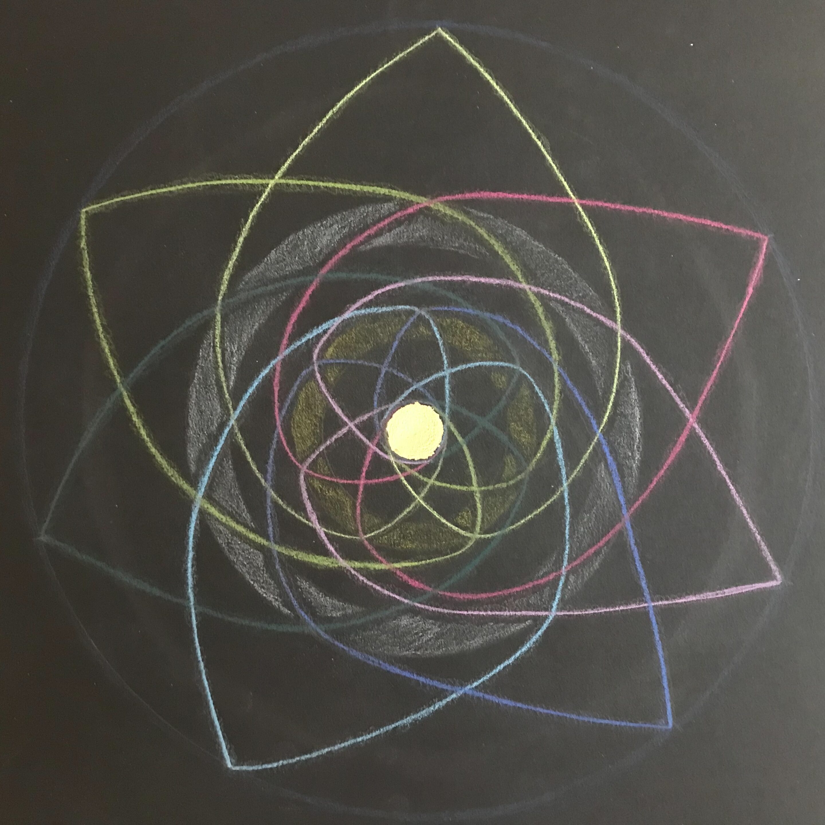 Die Wirkungsmuster zentrierter Kraftströmungen wurden aus meiner Wahrnehmung aufgemalt. Sie sind in einer dreigliedrigen Grundstruktur unterteilt.