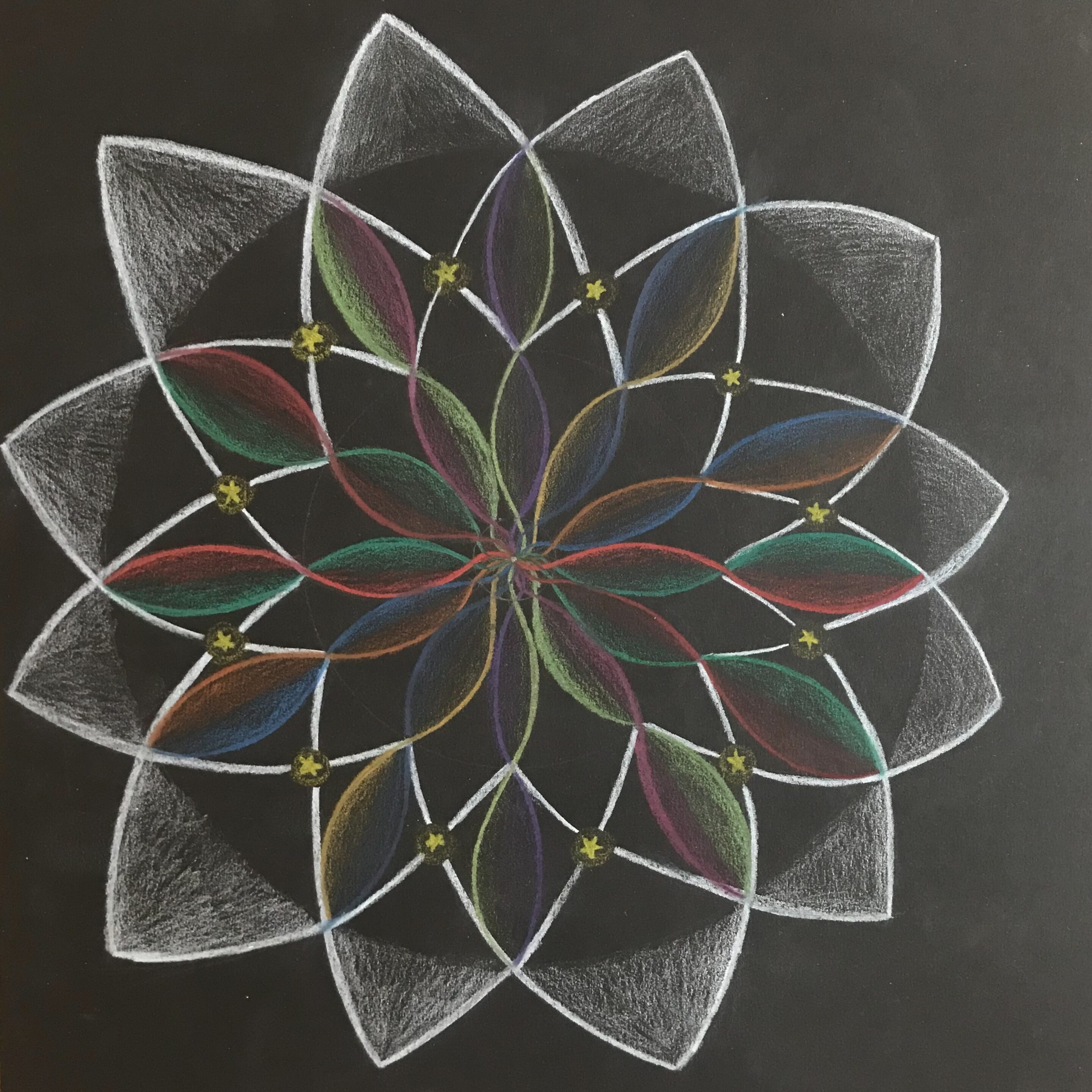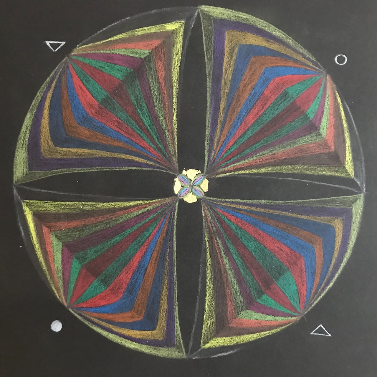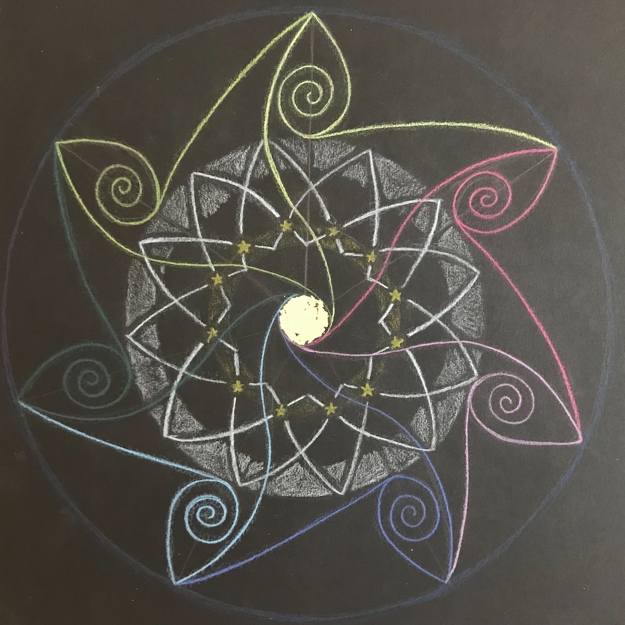 Die Wirkungsmuster zentrierter Kraftströmungen wurden aus meiner Wahrnehmung aufgemalt. Sie sind in einer dreigliedrigen Grundstruktur unterteilt.