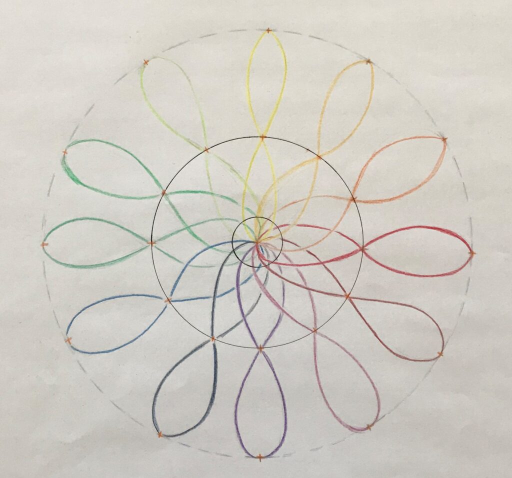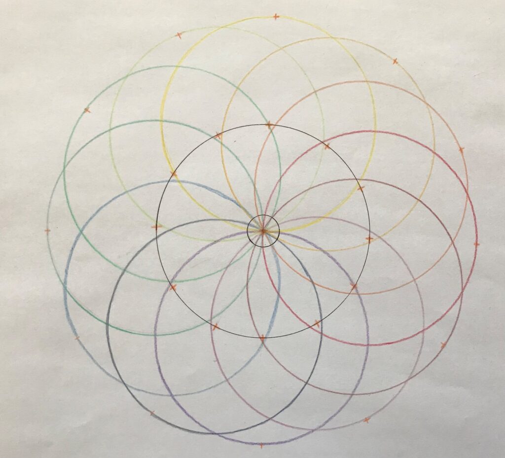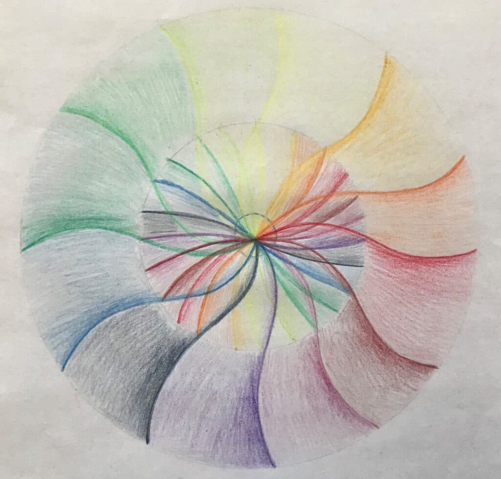 In einer meditativen Auseinandersetzung mit den körperlichen Sinnen (Sehen, Riechen, Hören, Schmecken, Tasten und Propriozeption) in Verbindung zur Herzenskraft wurde es möglich, verschiedene grundständige Netzwerkstrukturen aufzumalen.