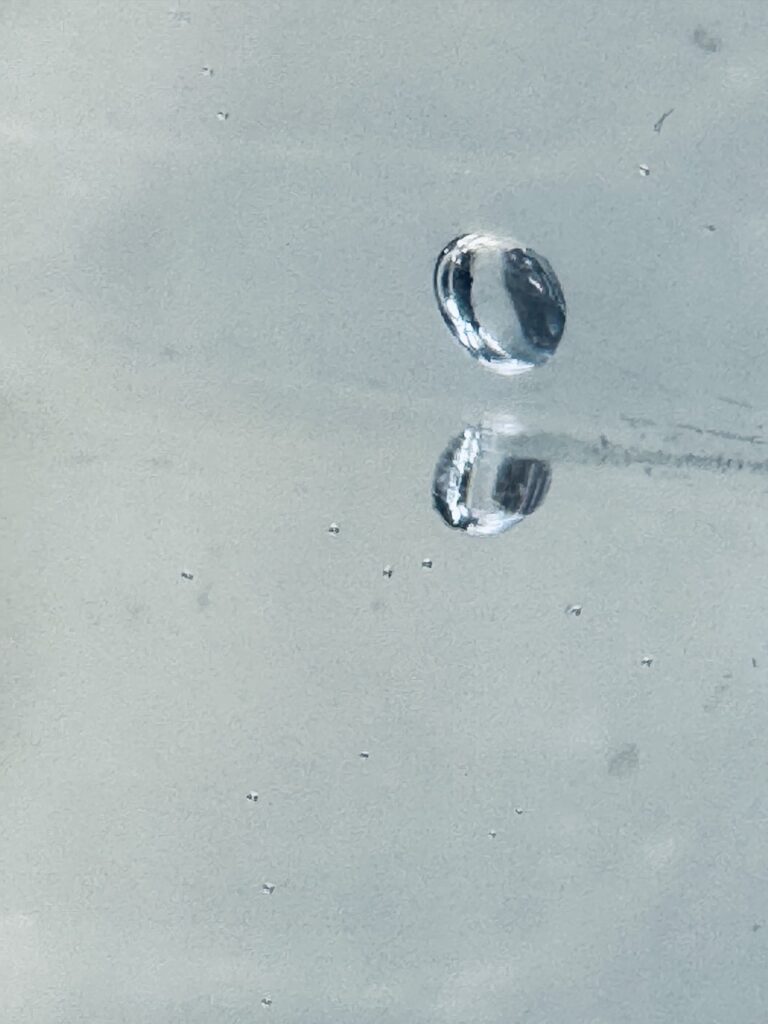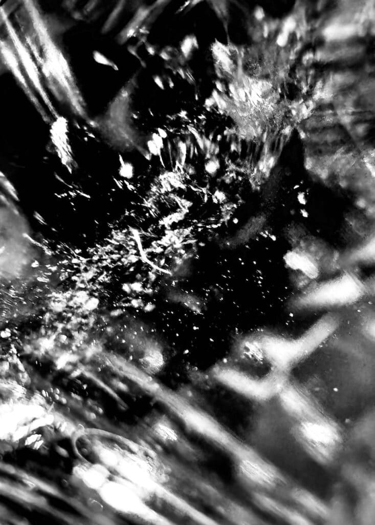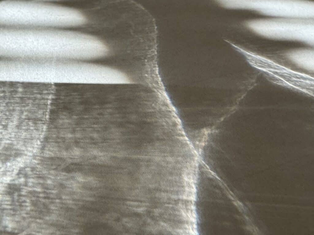 Hinweis: Die Fotografien sind Ausschnitte aus einer Alltagssituation: Bürotisch, Blatt Papier, Wasserglas und Sonnenlicht.